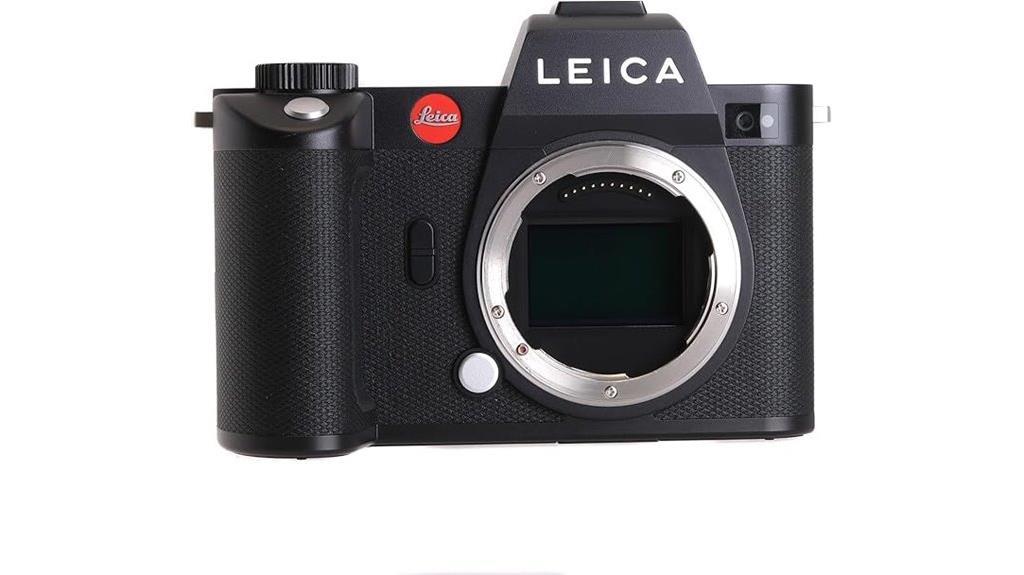 The Leica SL3 Mirrorless Camera (Black) #10607 stands out as an exceptional choice for professional photographers and videographers seeking unmatched image quality and versatility. With its 60MP BSI CMOS sensor and Maestro IV processor, it delivers breathtaking images and 8K video capabilities. The hybrid autofocus system guarantees precise tracking of faces and moving subjects, even in low light. Plus, the 5-axis image stabilization assures sharp handheld shots. Its ergonomic design and durable IP54-rated body make it perfect for tough environments. With dual card slots and seamless connectivity options, this camera is ready to capture stunning moments with confidence.